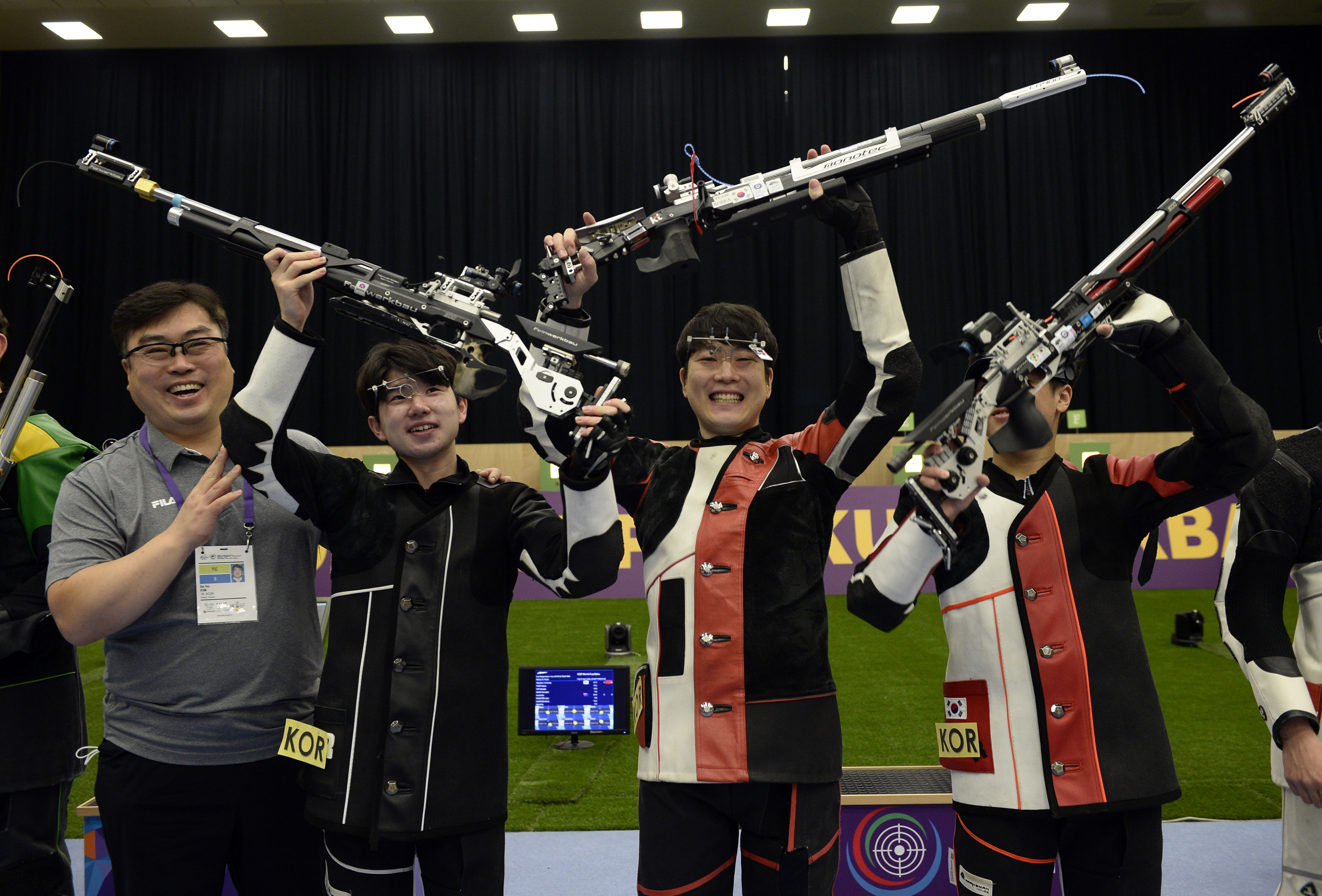 В мужских командных соревнованиях по стрельбе из пистолета сборная Ирана завоевала золотую медаль, обыграв Италию со счетом 16:10. Бронзовая медаль досталась немцам.