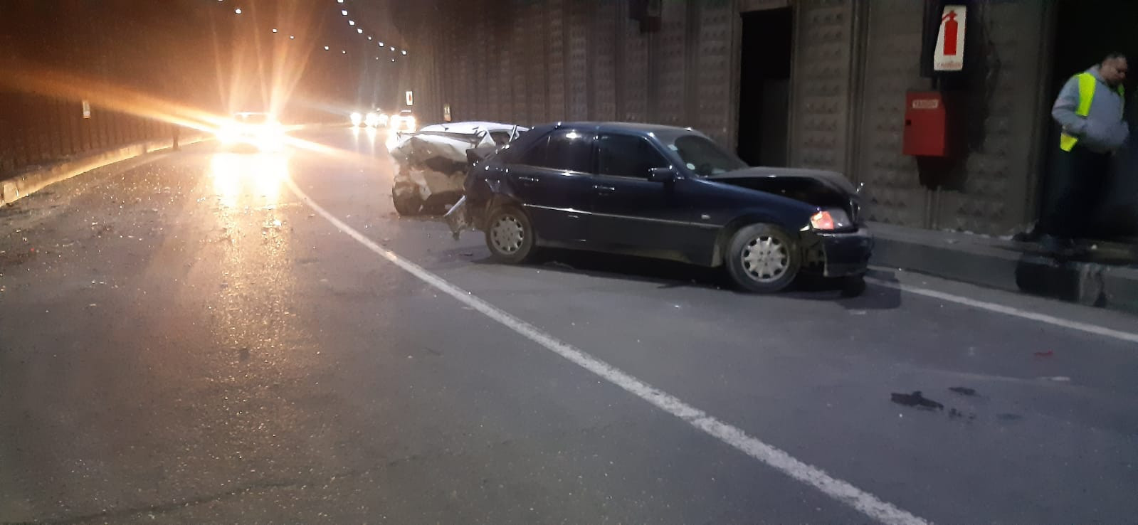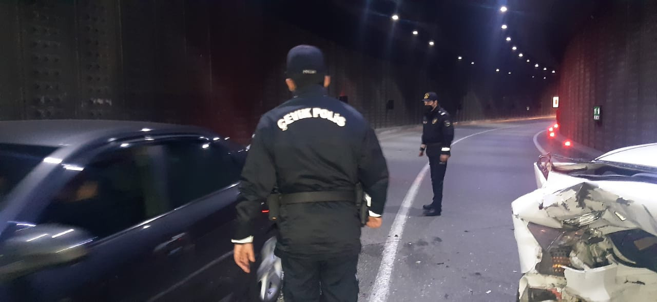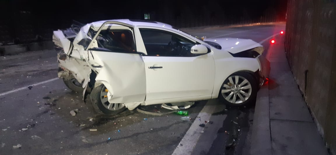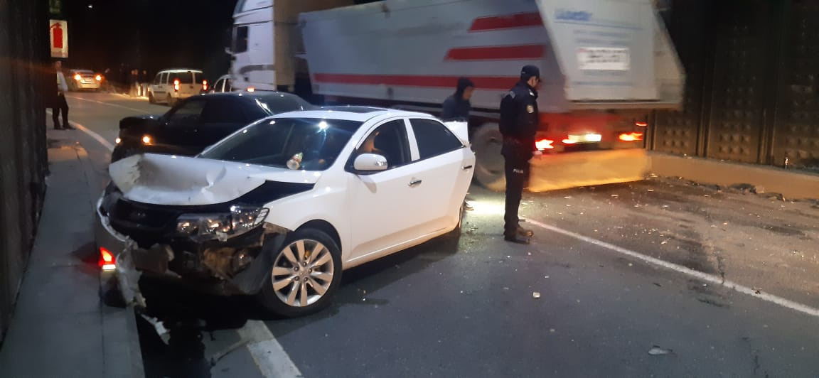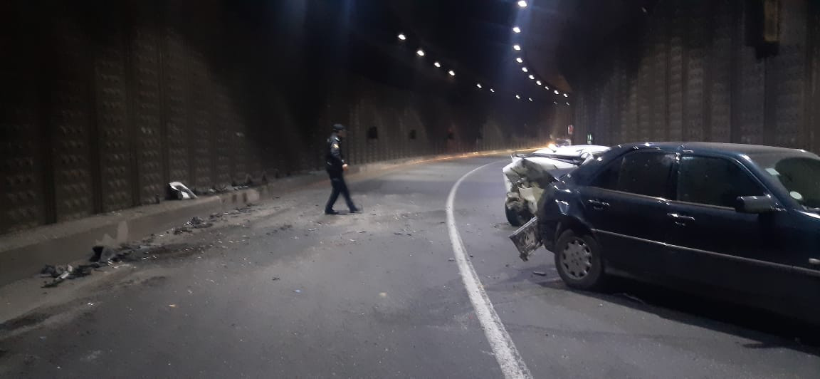 Автомобиль марки Chevrolet, управляемый Атабеком Рамазанлы 1992 года рождения, на высокой скорости врезался в Mercedes. Транспортное средство, вышедшее из-под контроля, также врезалось в автомобиль марки Kia и в бетонную стену. В результате аварии А.Рамазанлы получил тяжелые травмы и был госпитализирован. На место происшествия привлечены сотрудники Управления полиции Насиминского района. В целях обеспечения безопасности полиция перекрыла часть туннеля в направлении круга Гелебе. Разбившиеся автомобили были удалены с территории с помощью эвакуаторов.
