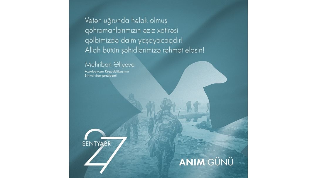 Первый вице-президент Азербайджана Мехрибан Алиева поделилась на своей официальной странице в Instagram публикацией по случаю 27 сентября – Дня Памяти.