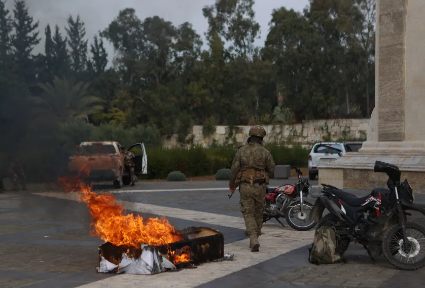 Вооруженная толпа сожгла мавзолей Хафеза Асада - отца бывшего президента Сирии Башара Асада - в его родном городе Кардаха (провинция Латакия).