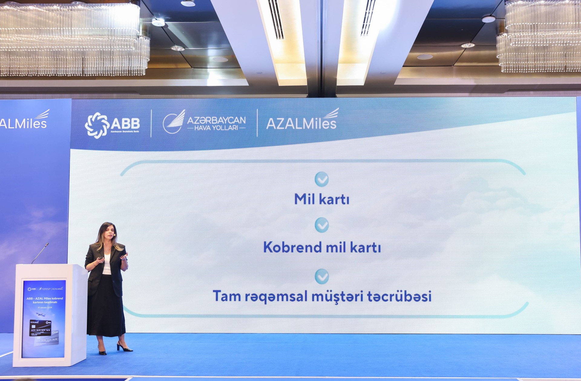 Председатель Правления Банка ABB Аббас Ибрагимов на презентации подчеркнул: “В сотрудничестве с нашим надежным партнером - авиакомпанией Azerbaijan Airlines - мы создали карту, которая объединяет инновационные финансовые решения и эксклюзивные преимущества для путешествий. Наша задача - сделать путешествия максимально доступными для наших клиентов и помочь им превратить свои повседневные расходы в незабываемые впечатления”.