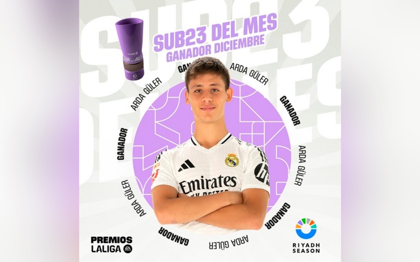 Турецкий полузащитник мадридского "Реала" Арда Гюлер признан лучшим игроком ноября в Ла Лиге среди футболистов до 23 лет.