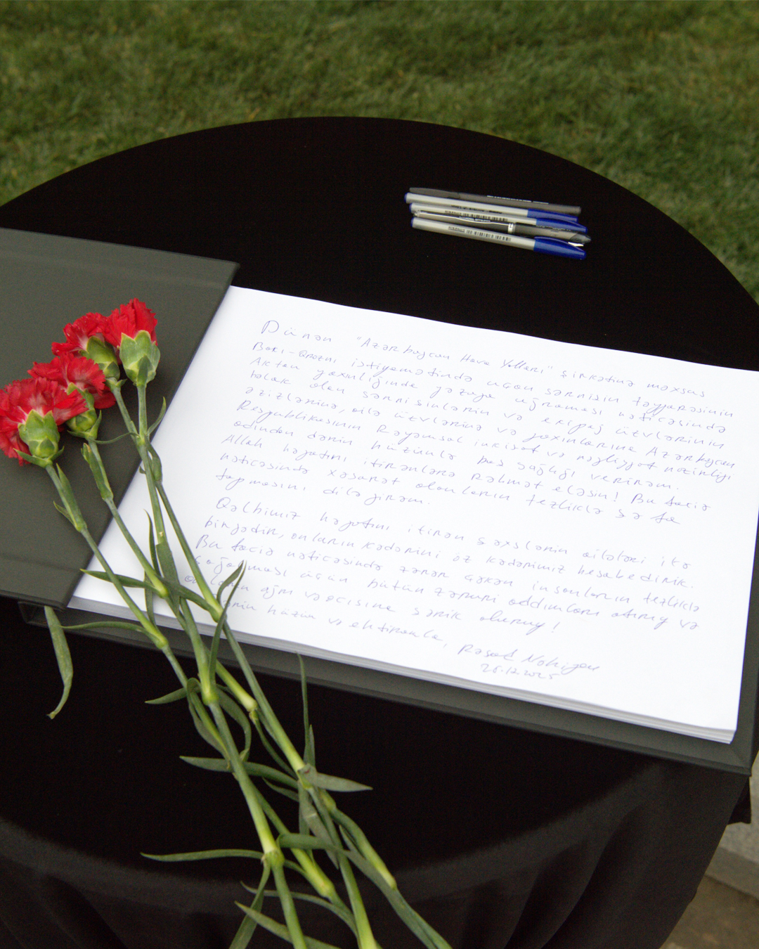 Как передает "Qafqazinfo", к мемориальной доске, установленной в аэропорту в связи с происшествием, возложены цветы.