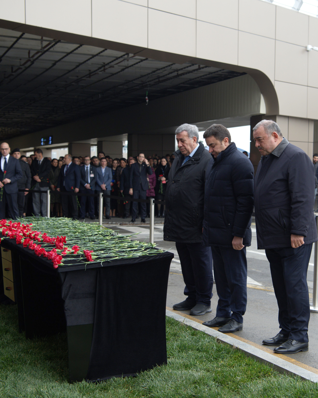 В Международном аэропорту Гейдар Алиев (GYD) почтили память пассажиров и членов экипажа, погибших в результате крушения пассажирского самолета Embraer 190, выполнявшего рейс по маршруту Баку-Грозный.