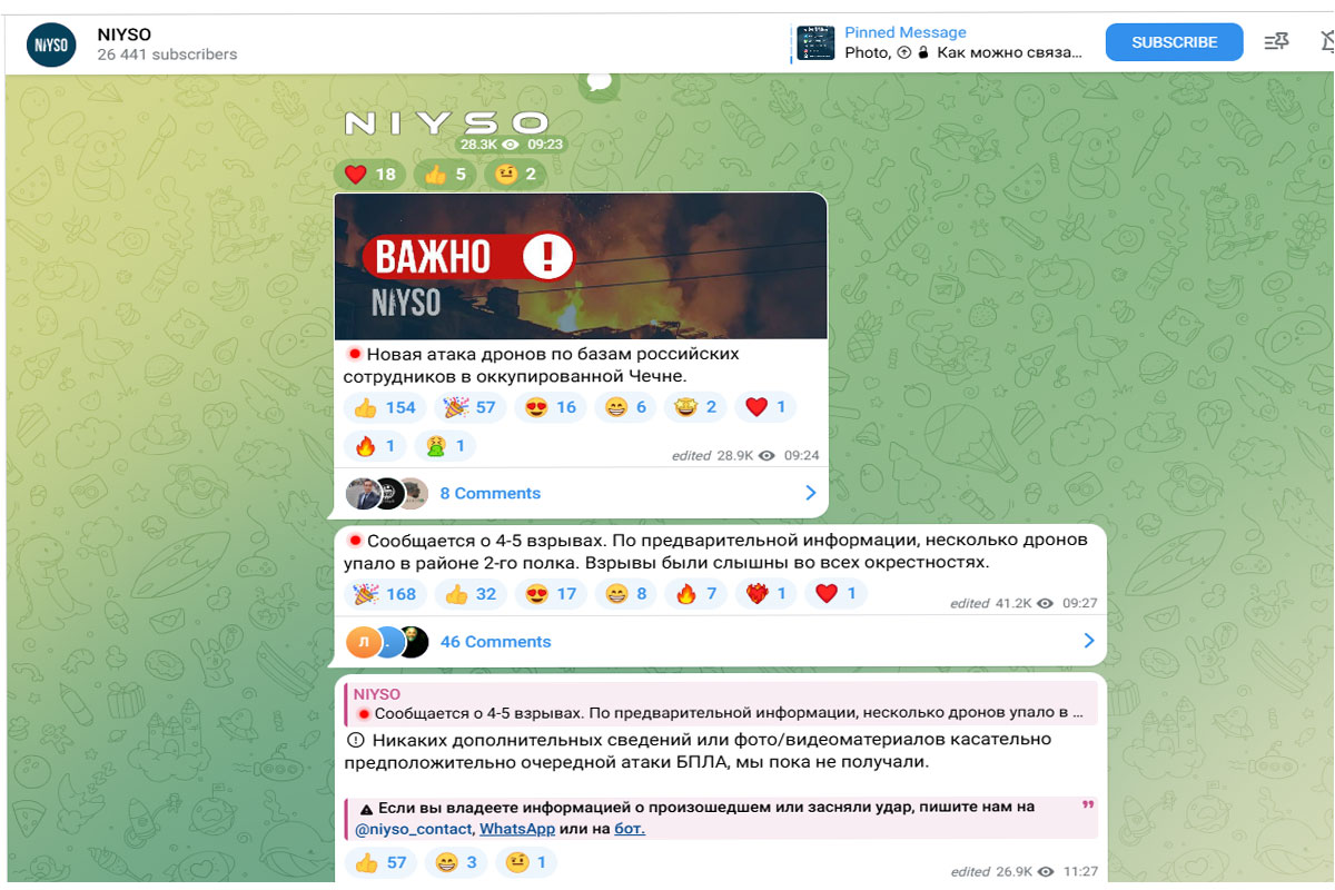 Отметим, что чеченский телеграм-канал NIYSO, оппозиционный российским властям, первым сообщил об атаке БПЛА в 09:24.
