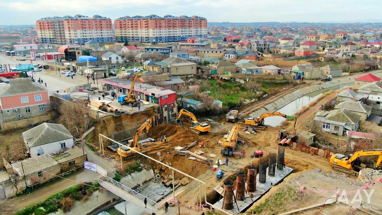 Строительство нового моста на улице Мухаммеда Асадова, соединяющего Сумгаит с поселком Сарай Абшеронского района, продолжается.