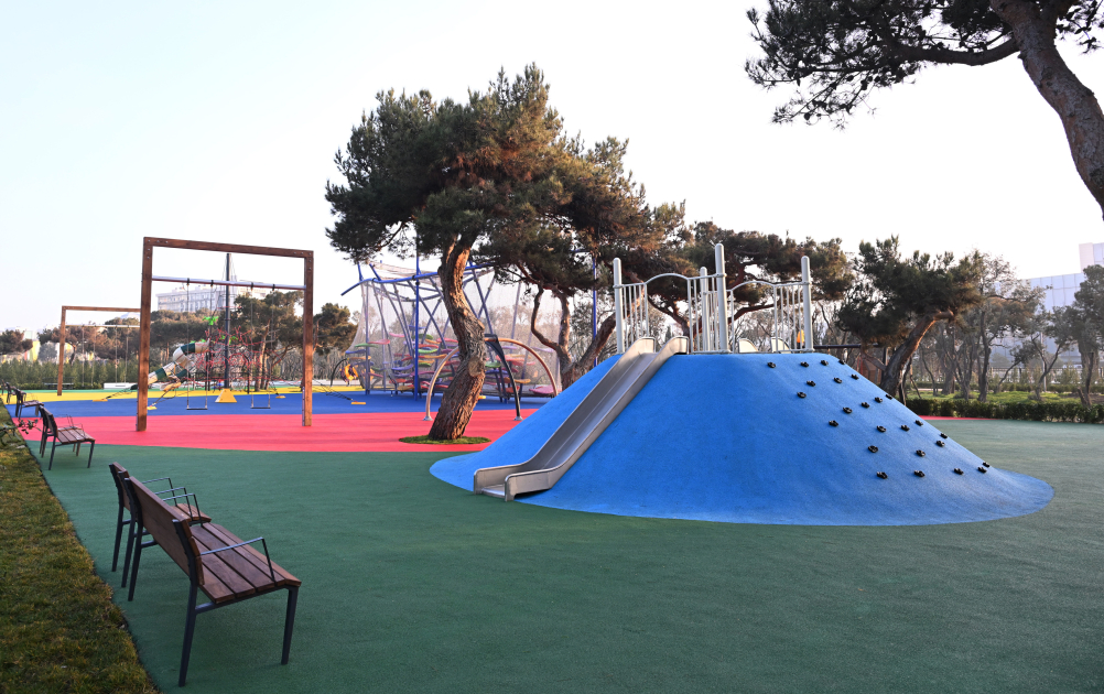 Также построен подземный переход, соединяющий новый парк с близлежащим парком "Деде Горгуд". Это создает условия для безопасного и комфортного передвижения жителей.