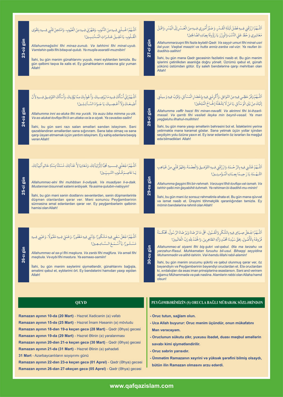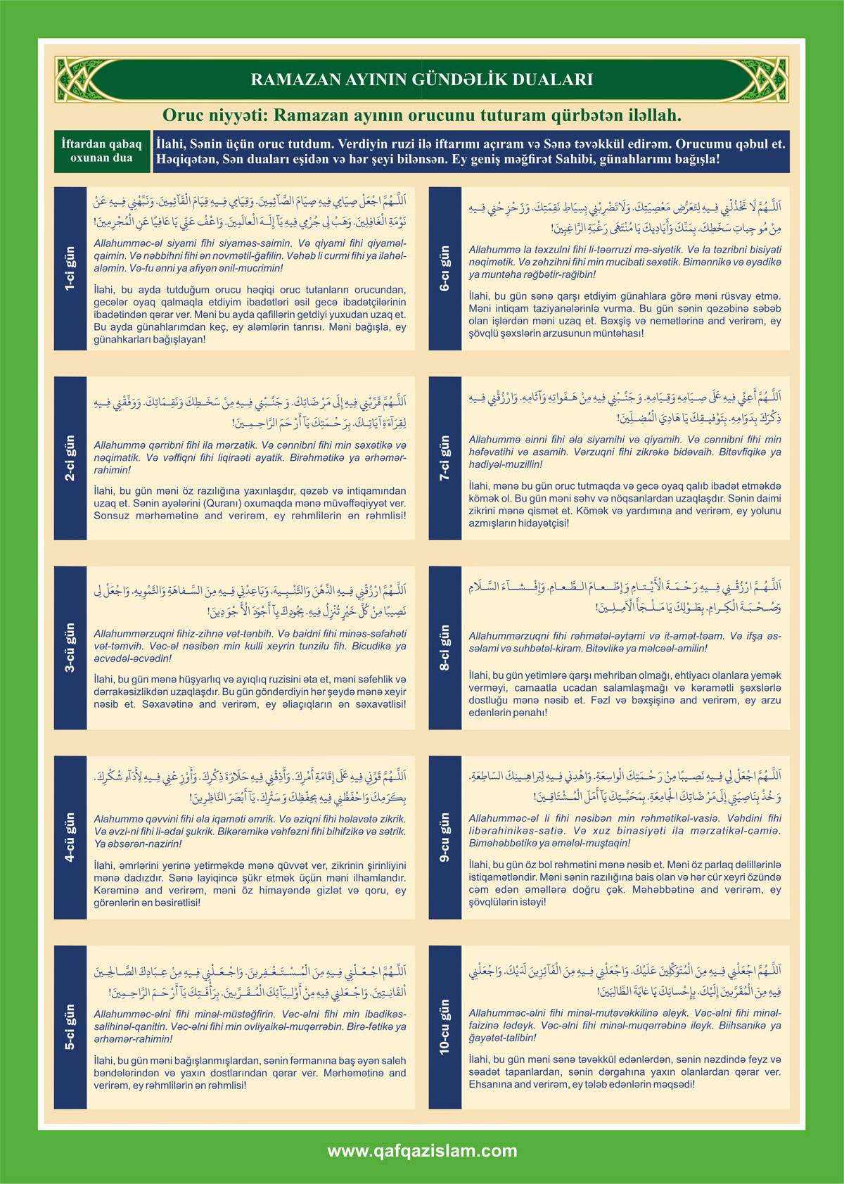 Управление мусульман Кавказа составило специальный календарь ежедневных молитв, где указано время имсака (время рассвета) и ифтара (вечерний прием пищи) месяца Рамазан.