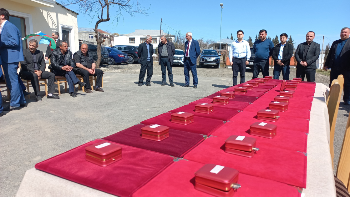 В церемонии вручения ключей принимали участие представители Государственного комитета по делам беженцев и вынужденных переселенцев, а также Специального представительства Президента Азербайджана в городе Ханкенди, Агдеринском и Ходжалинском районах.
