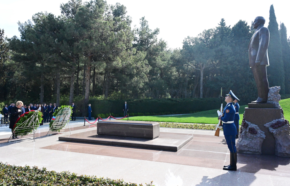 Находящаяся в нашей стране с официальным визитом делегация во главе с председателем Совета Федерации Федерального Собрания Российской Федерации Валентиной Матвиенко 17 марта посетила Аллею почетного захоронения, где почтила память архитектора и основателя нашего современного независимого государства, общенационального лидера нашего народа Гейдара Алиева, возложила венок к его могиле.