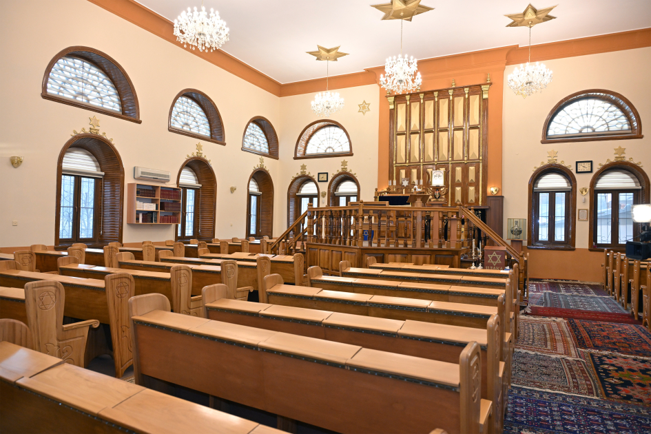 Отмечалось, что синагога, построенная в 1888 году, является памятником архитектуры, построенным в восточном стиле. Часть, выходящая на внутреннюю стену поклонения в синагоге, где имеется большой зал для богослужения, называется арон а-кодеш. Окна, имеющие форму шестиугольной звезды, изготовлены из дуба. Здесь функционирует зал на 65 мест для проведения религиозных обрядов.