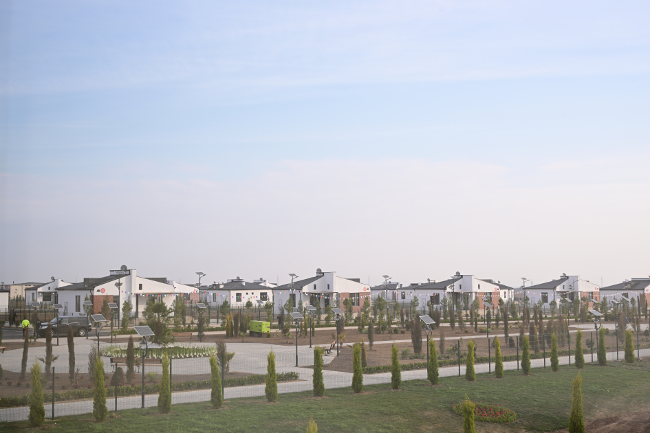 Отметим, что на первом этапе сюда планируется переселить 895 человек (203 семьи). Уже построено 203 частных дома. Дома являются двух-, трех-, четырех- и пятикомнатными. С учетом численности населения, которое будет размещено здесь в будущем, под первый этап строительства села выделен земельный участок площадью 54 гектара.