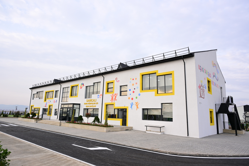 Затем Президент Азербайджанской Республики Ильхам Алиев и первая леди Мехрибан Алиева приняли участие в открытии ясли-детского сада в селе Сарыджалы.