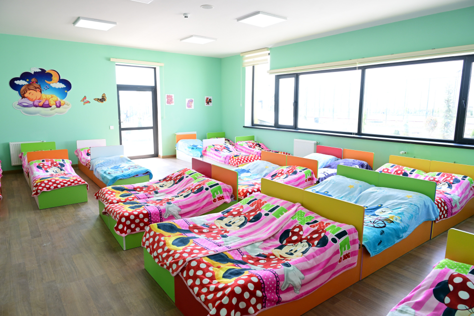 Глава государства и первая леди были проинформированы о том, что в яслях-детском саду на 100 мест, построенном в соответствии с современными стандартами, созданы все условия для обучения и воспитания малышей, их подрастания в здоровой среде. Все комнаты оснащены необходимым оборудованием. Особое внимание здесь будет уделяться обеспечению интеллектуального и физического развития детей с первых лет жизни, выявлению их талантов и способностей, охране здоровья малышей, формированию у них умения налаживать общение. В яслях-детском саду будут действовать пять групп.