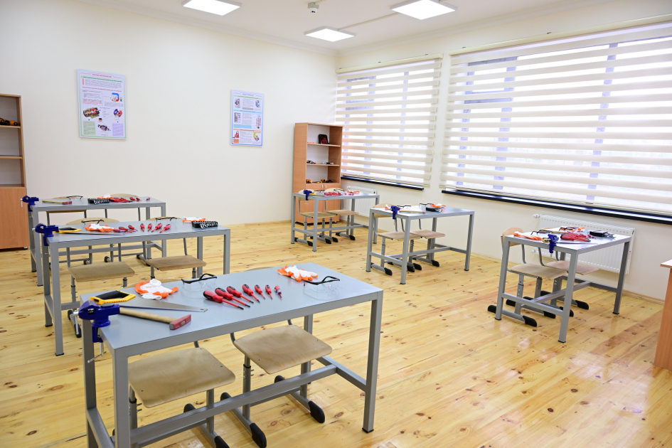 Было отмечено, что в школе на 360 ученических мест имеются 14 классных комнат. Здесь созданы необходимые условия для эффективного проведения образовательного процесса, кабинеты оснащены необходимыми учебными пособиями. В школе имеются лаборатории, кабинеты технологий, биологии и информатики, допризывной подготовки, библиотека, актовый и спортивный залы, столовая.