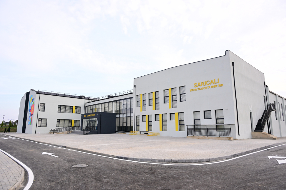 После этого Президент Азербайджанской Республики Ильхам Алиев и первая леди Мехрибан Алиева приняли участие в открытии здания полной средней школы села Сарыджалы.
