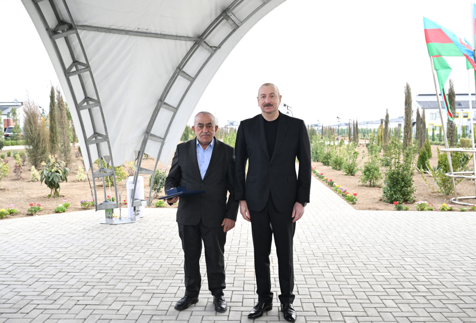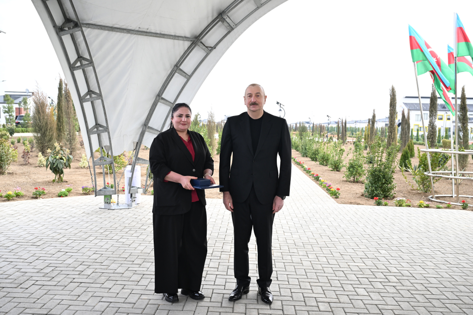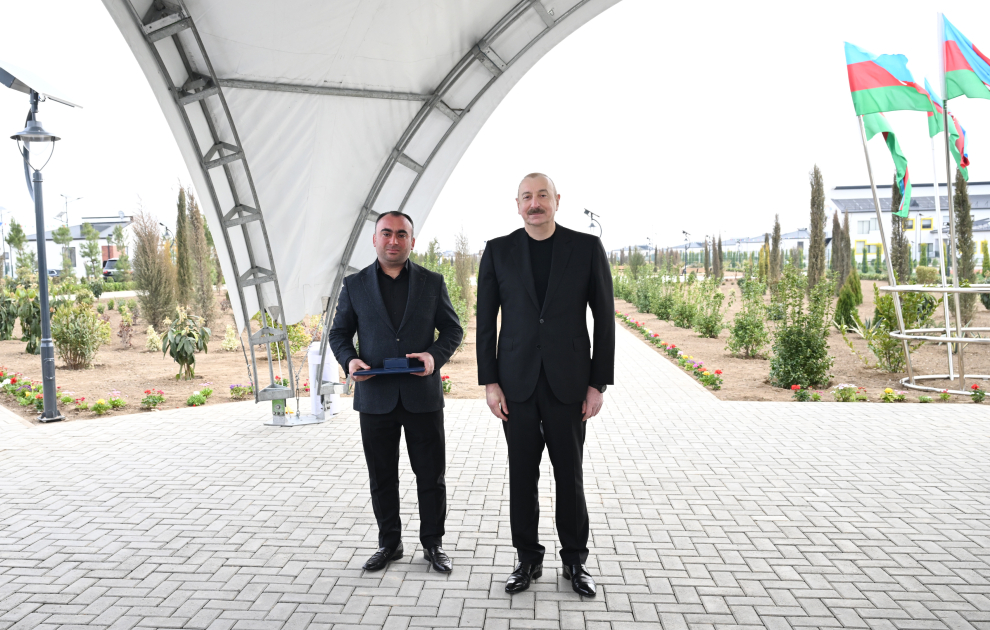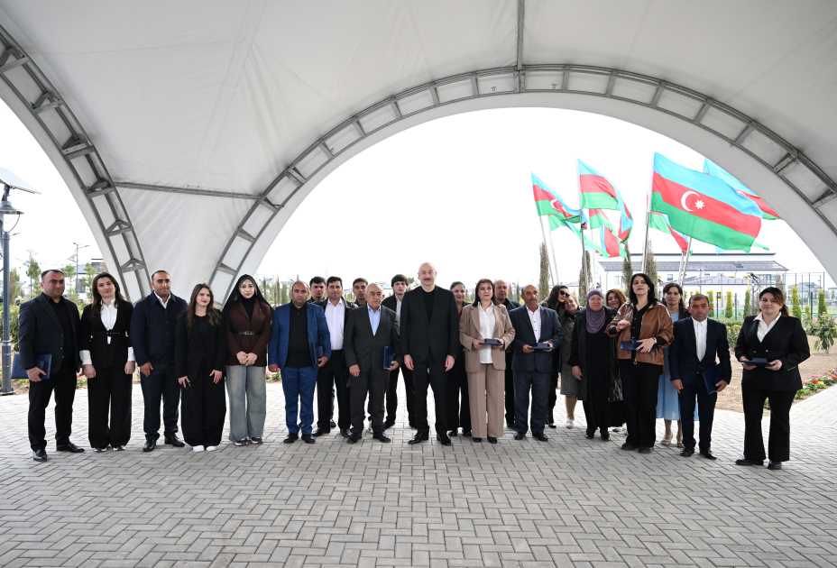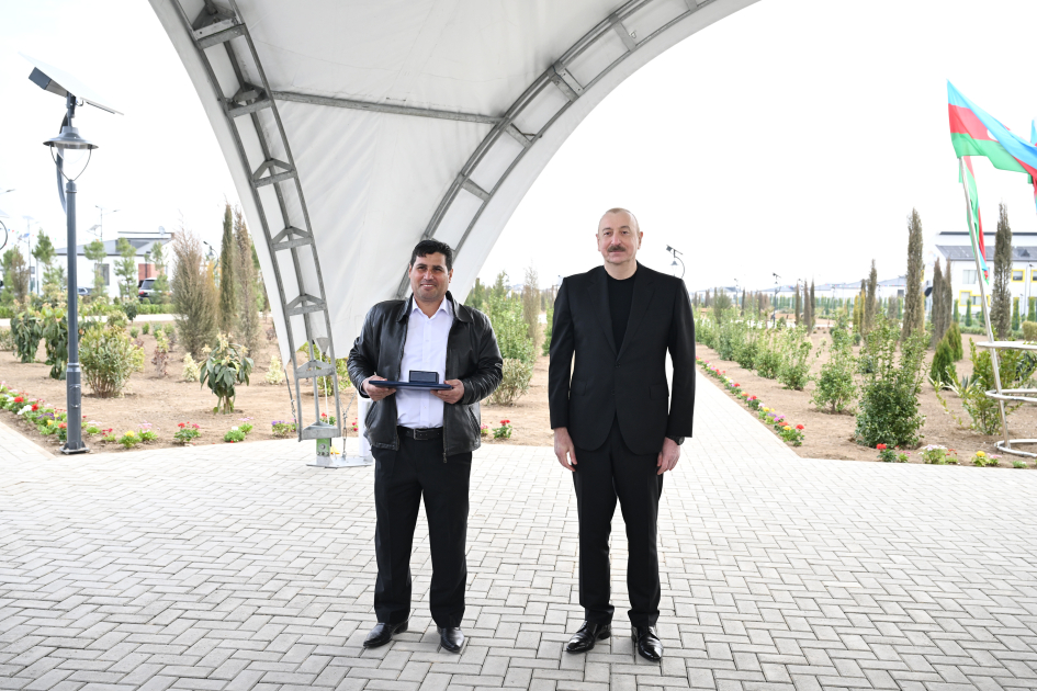 Президент Ильхам Алиев: На освобожденных территориях сейчас проживает и работает более 40 тыс. человек. К концу года должны вернуться около 30-40 тысяч человек. Сейчас вы - первые жители Агдамского района. Но в ближайшие месяцы приедут и соседи: в Хыдырлы, вы, наверное, видели, там ведутся масштабные строительные работы, в Кенгерли, до конца года – в город Агдам. Здесь вы будете жить спокойно, счастливо.