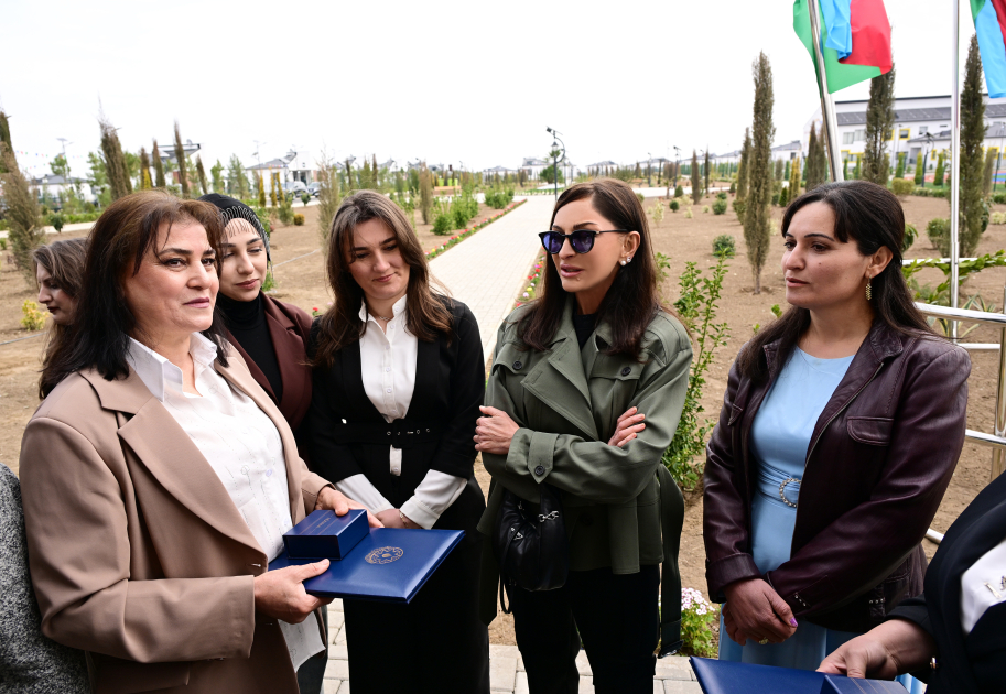После этого Президент Ильхам Алиев и первая леди Мехрибан Алиева побеседовали с жителями села.