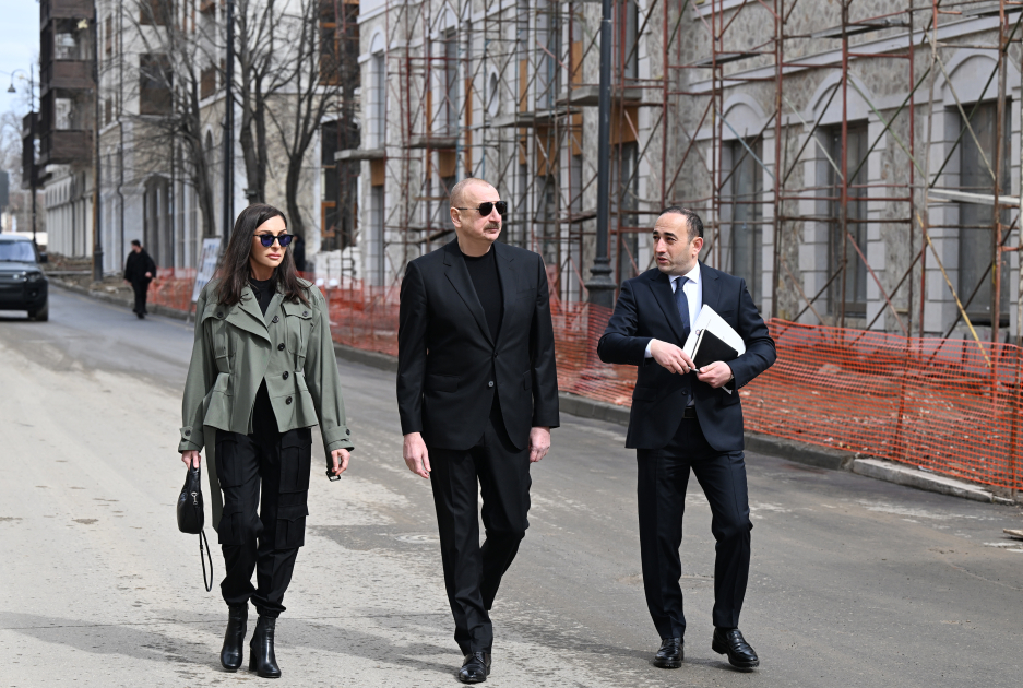 Президент Ильхам Алиев и первая леди Мехрибан Алиева ознакомились со строительными работами, проводимыми в рамках проектов государственно-частного партнерства, и условиями, созданными в объектах общественного питания на улице Карабах в Шуше.