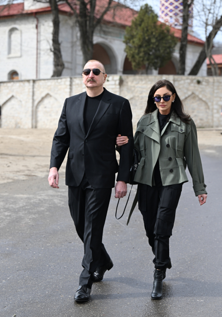 Как сообщает “Qafqazinfo”, глава государства и первая леди приняли участие в открытии после реставрации исторической мечети Чель Гала и источника в Шуше.