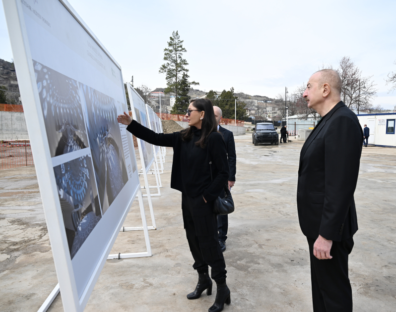 Затем глава государства и первая леди ознакомились со строительными работами, проводимыми в Шушинском лечебно-оздоровительном центре.