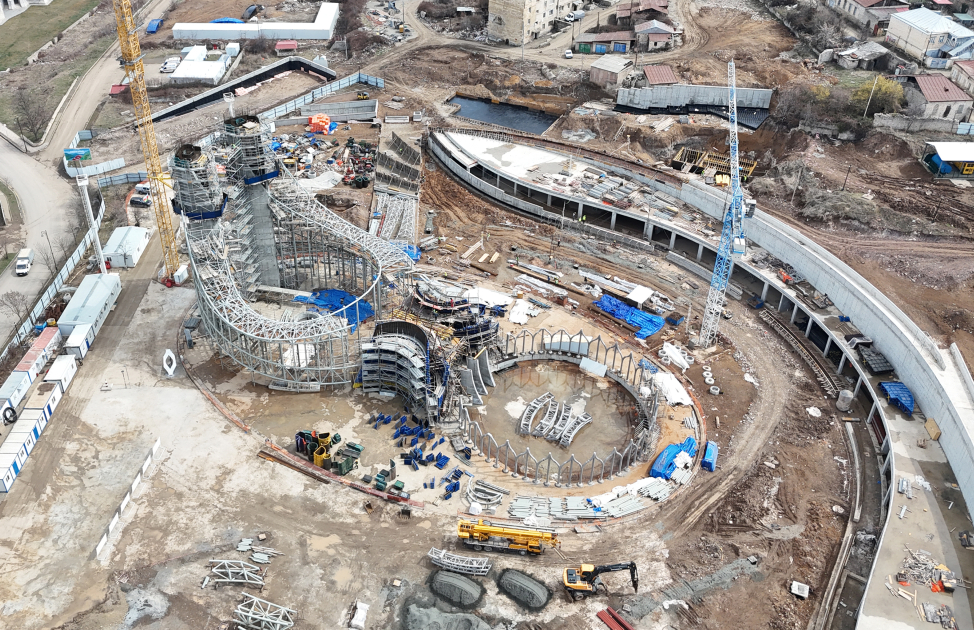 В настоящее время на территории продолжаются железобетонные и электромонтажные работы, а также сборка металлоконструкций.