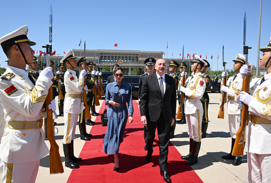 Как передает "Qafqazinfo", в международном аэропорту Пекина в честь главы государства был выстроен почетный караул.