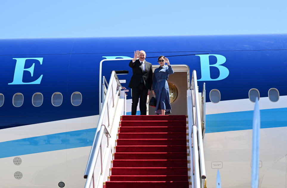Президента Ильхама Алиева и первую леди Мехрибан Алиеву провожали официальные лица.