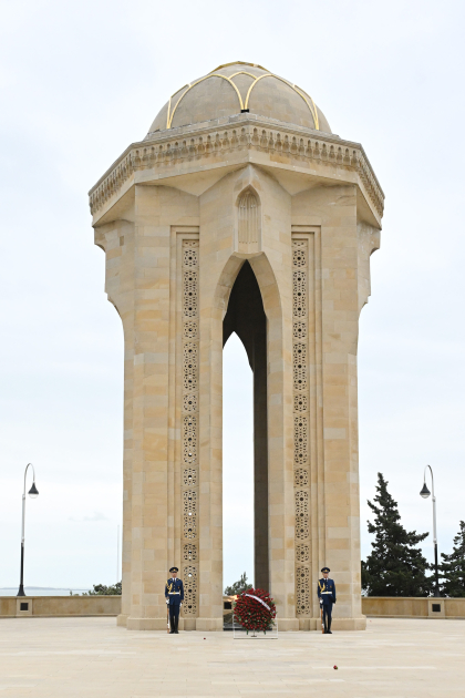 Как сообщает "Qafqazinfo", Масуд Пезешкиан с глубоким уважением почтил память героических сынов и дочерей Родины, отдавших жизнь за независимость и территориальную целостность Азербайджана, возложил венок к мемориалу «Вечный огонь».