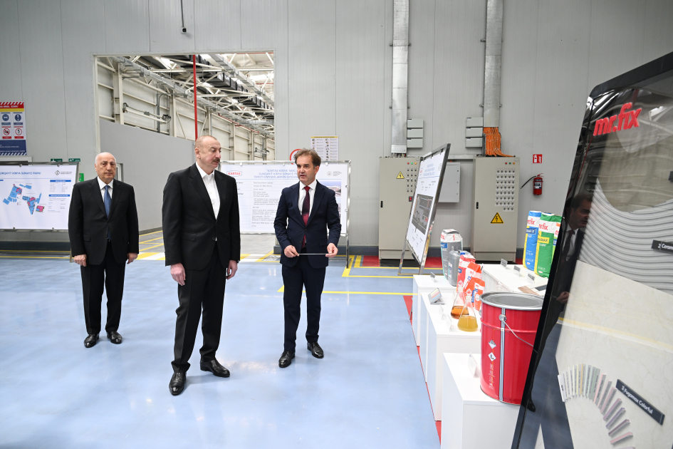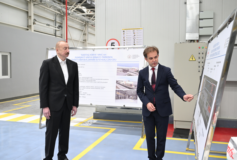 В связи с заводом по производству строительных химикатов было сообщено, что ООО “Карташ Кимья” в июле 2022 года получило статус резидента Сумгаитского химического промышленного парка. Под строительство завода, фундамент которого был заложен главой государства в 2023 году, отведена территория площадью 2,5 гектара.