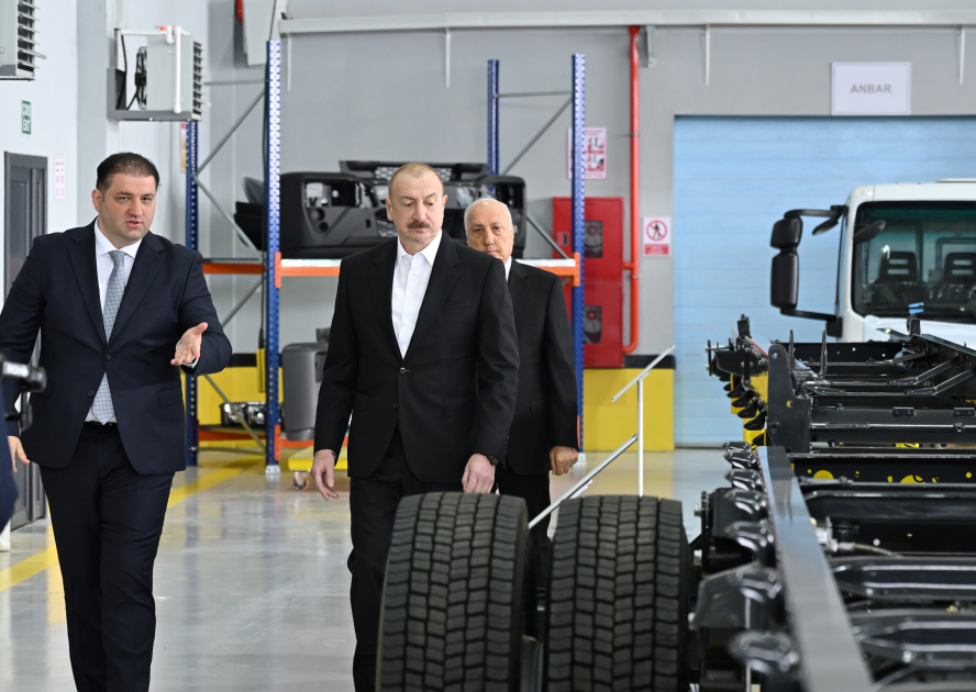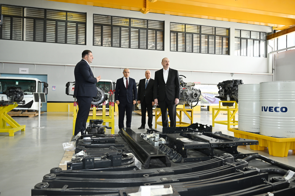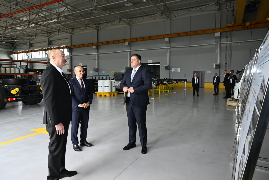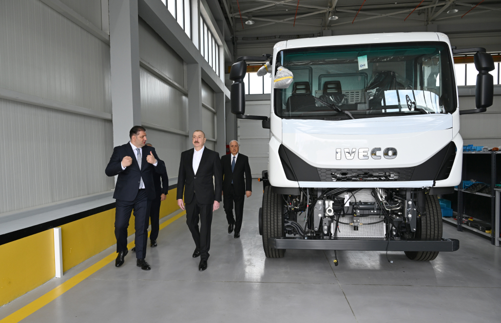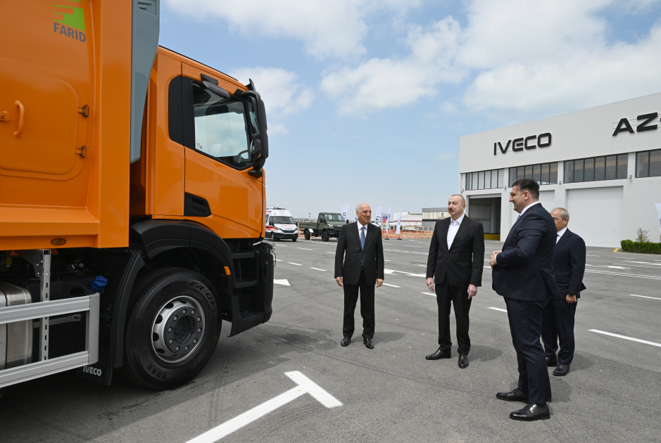 Президент Азербайджана Ильхам Алиев также принял участие в открытии завода по производству грузовых автомобилей и автомобилей специального назначения марки IVECO ООО Az-Tex-Import.