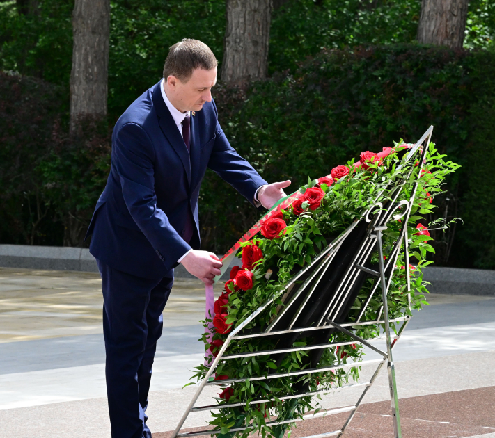 6 мая премьер-министр Республики Беларусь Александр Турчин посетил Аллею почетного захоронения и почтил память общенационального лидера нашего народа, архитектора и основателя современного независимого Азербайджанского государства Гейдара Алиева, возложил венок к его могиле.