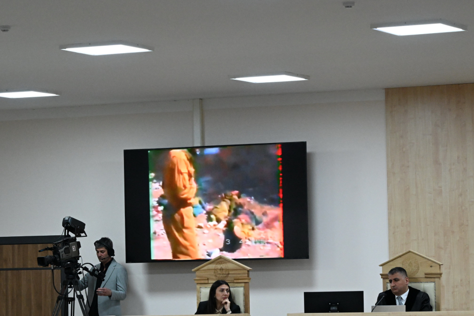 На суде сначала помощник генерального прокурора по особым поручениям Тугай Рагимли представил видеокадры, снятые армянами во время оккупации Кяльбаджара. Один из показанных видеоматериалов был снят в марте-апреле 1993 года.