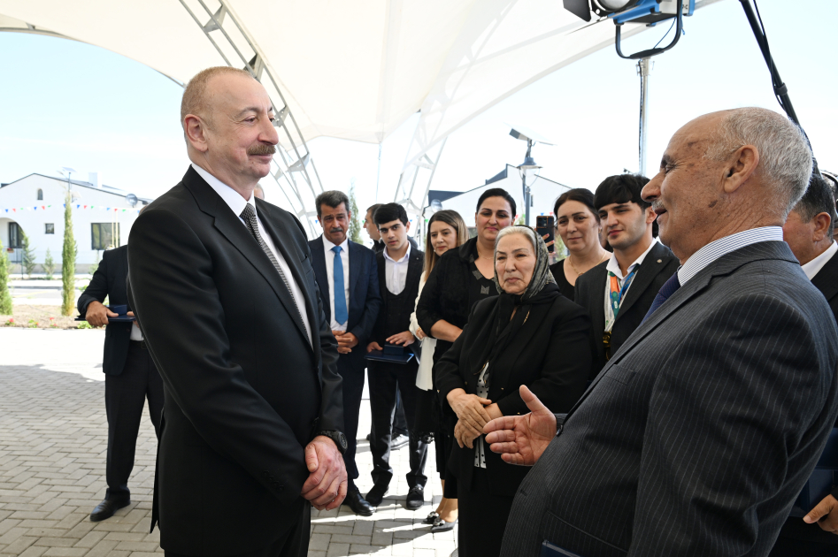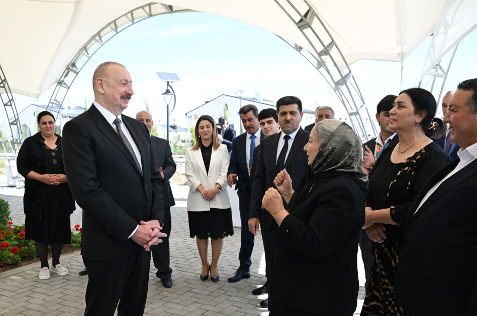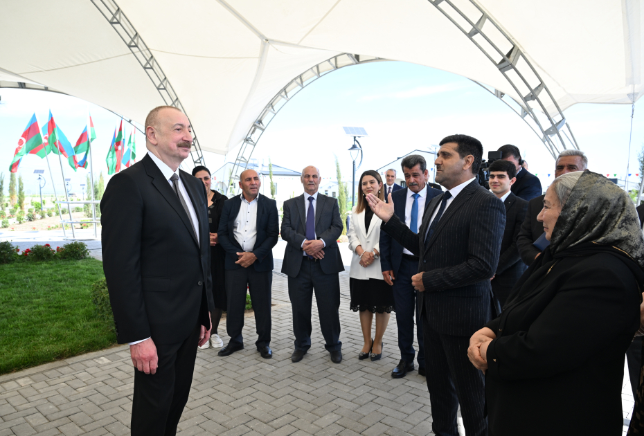 Президент Азербайджанской Республики Ильхам Алиев ознакомился с условиями, созданными в новых частных домах, построенных в селе Кенгерли.