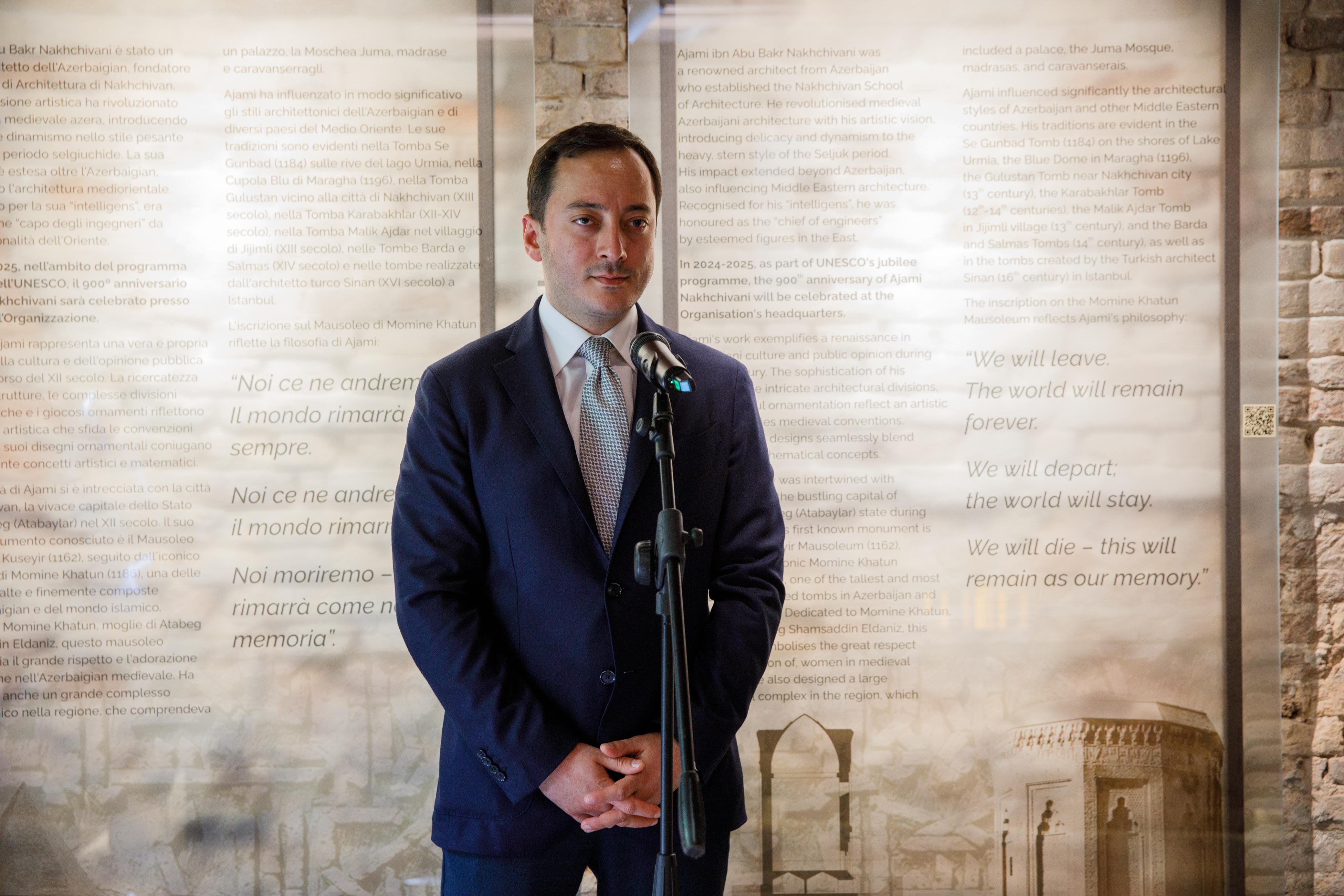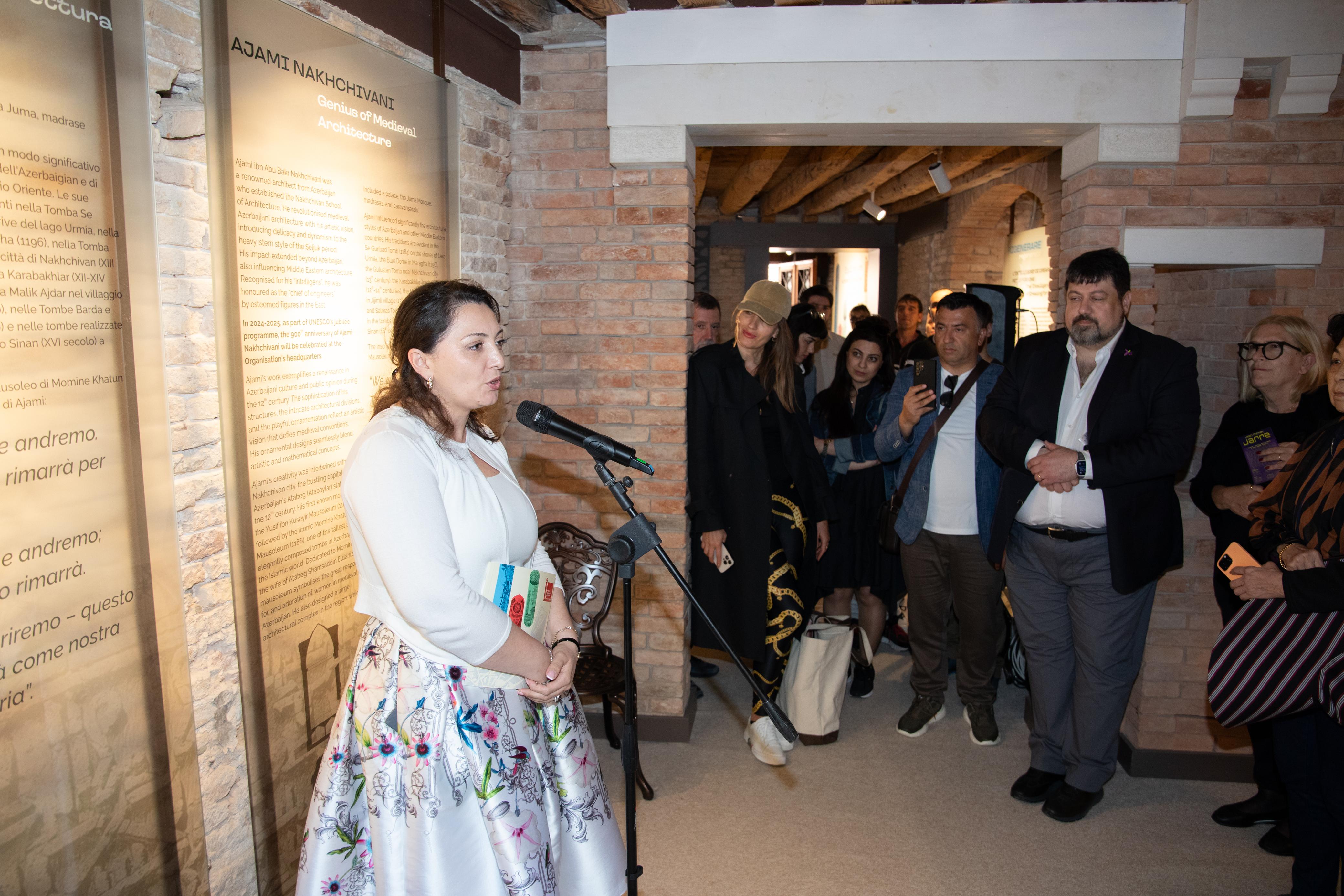В павильоне также представлены материалы о творившем в XII веке всемирно известном архитекторе Аджеми Нахчивани – основателе Нахчыванской архитектурной школы, который посвятил свою жизнь, знания и способности родному народу и нации.