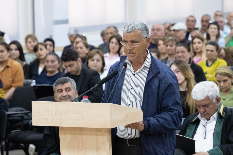 Сначала судья Зейнал Агаев представил потерпевшим, впервые участвующим в судебном разбирательстве, судебный состав, переводчиков и т.д., а также разъяснил их права и обязанности в соответствии с законодательством.