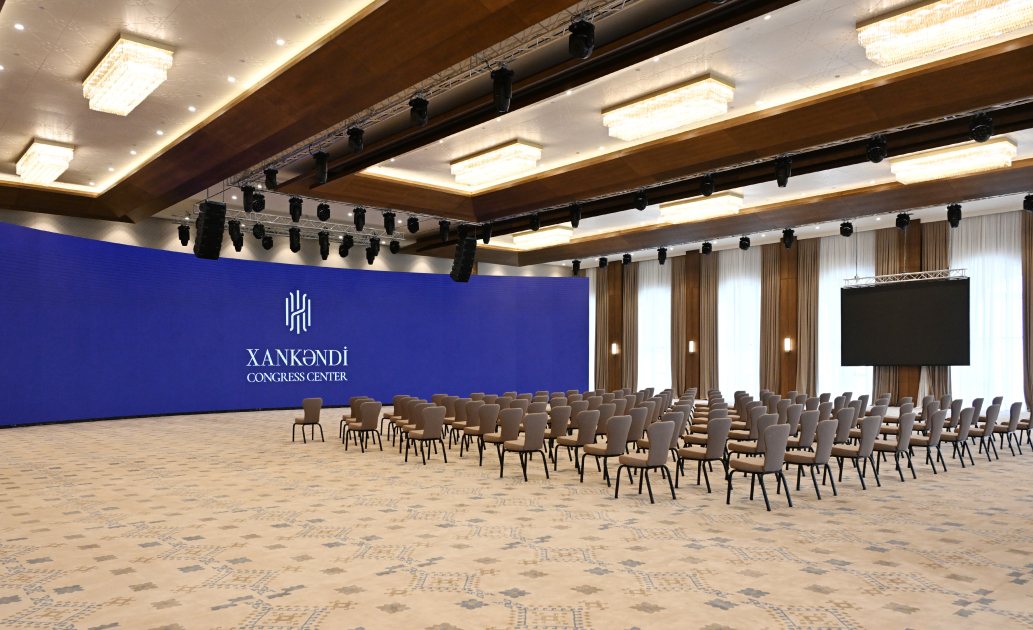 В здание Центра, сочетающего в себе современность и национальные архитектурные традиции, имеются широкие возможности для проведения различных конгрессов, конференций, семинаров, деловых встреч и других мероприятий странового и международного значения. На начальном этапе функционирования Конгресс-центра постоянной работой обеспечены 12 человек. Восемь из них - жители Ханкенди, Ходжалы, Кяльбаджара и других освобожденных от оккупации территорий. Конгресс-центр, отличающийся высокой функциональностью и современностью, является одним из важных проектов, служащих развитию социально-экономического потенциала наших освобожденных от оккупации территорий.