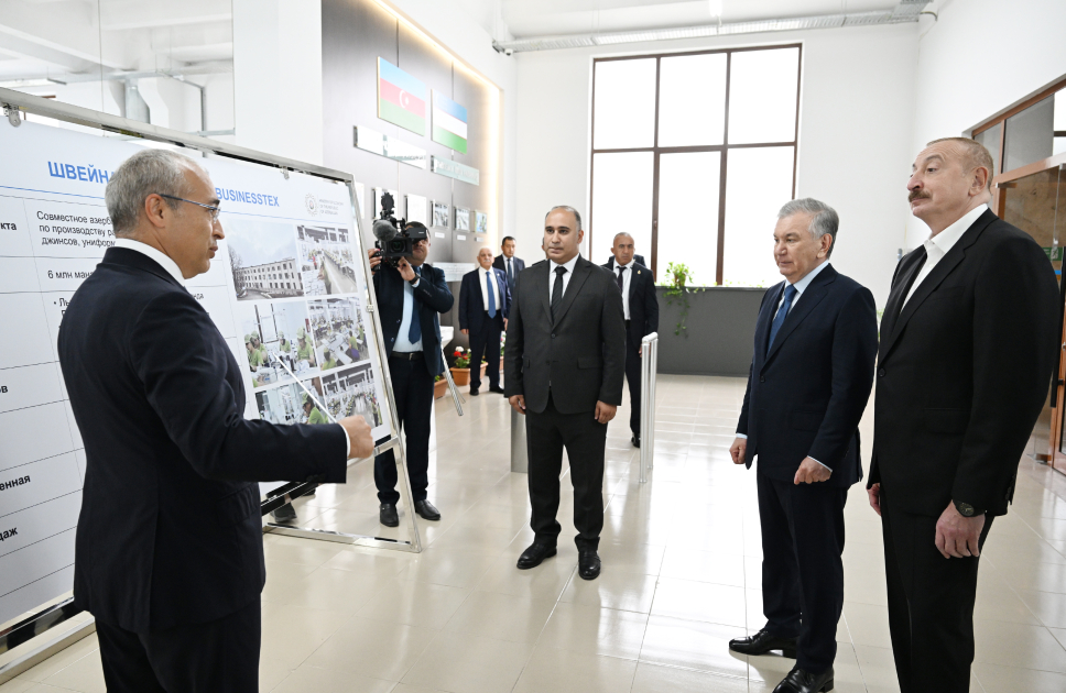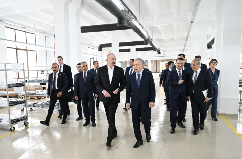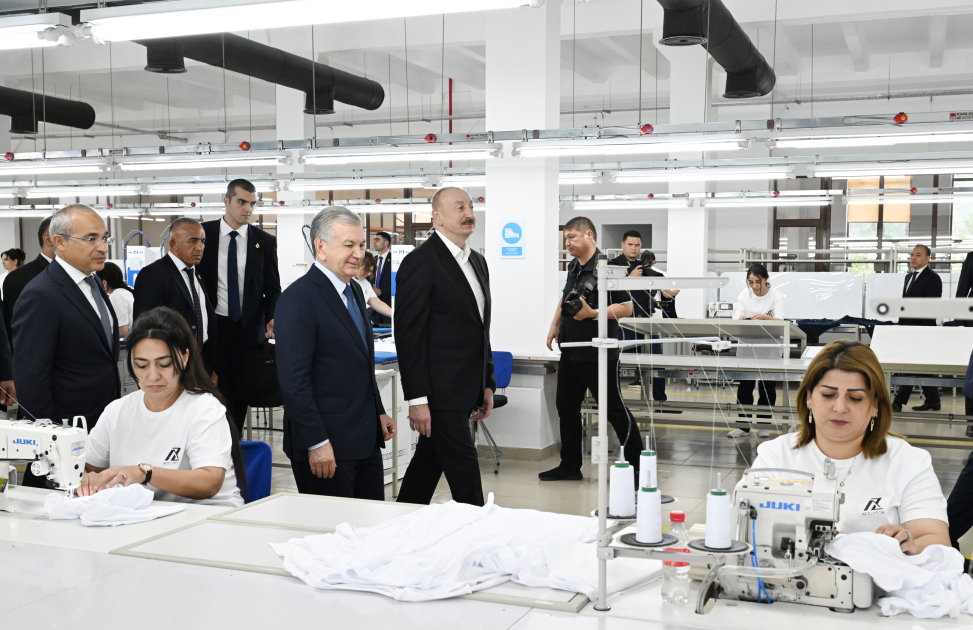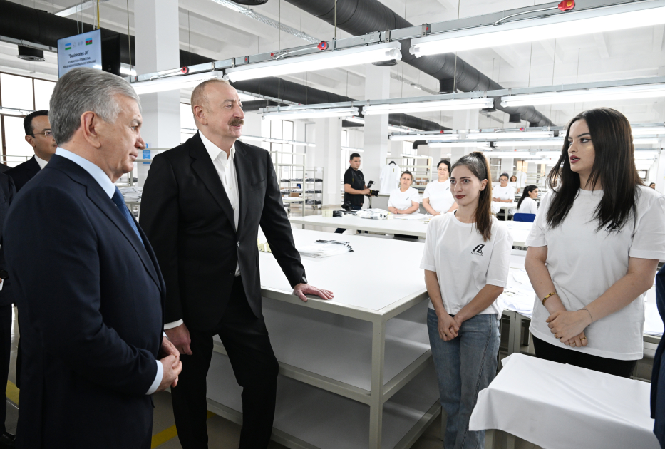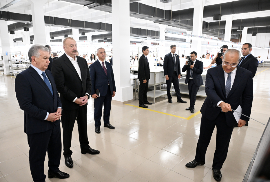 3 июля Президент Азербайджанской Республики Ильхам Алиев и Президент Республики Узбекистан Шавкат Мирзиёев ознакомились в городе Ханкенди с деятельностью азербайджано-узбекского совместного предприятия - швейной фабрики Businesstex JV.