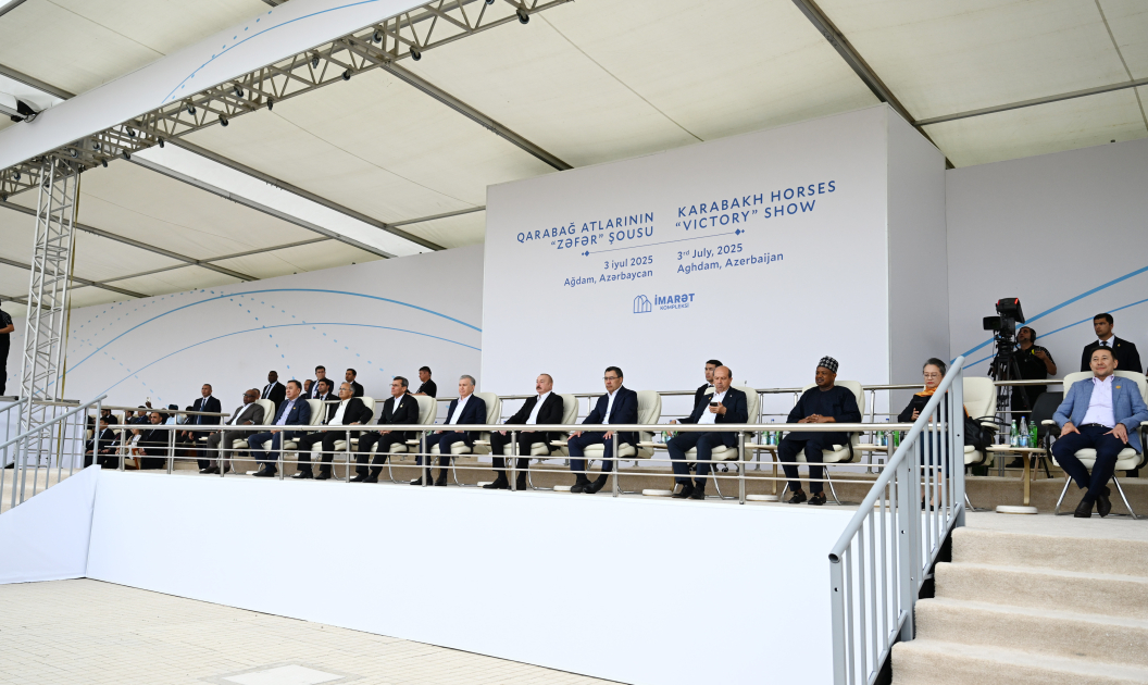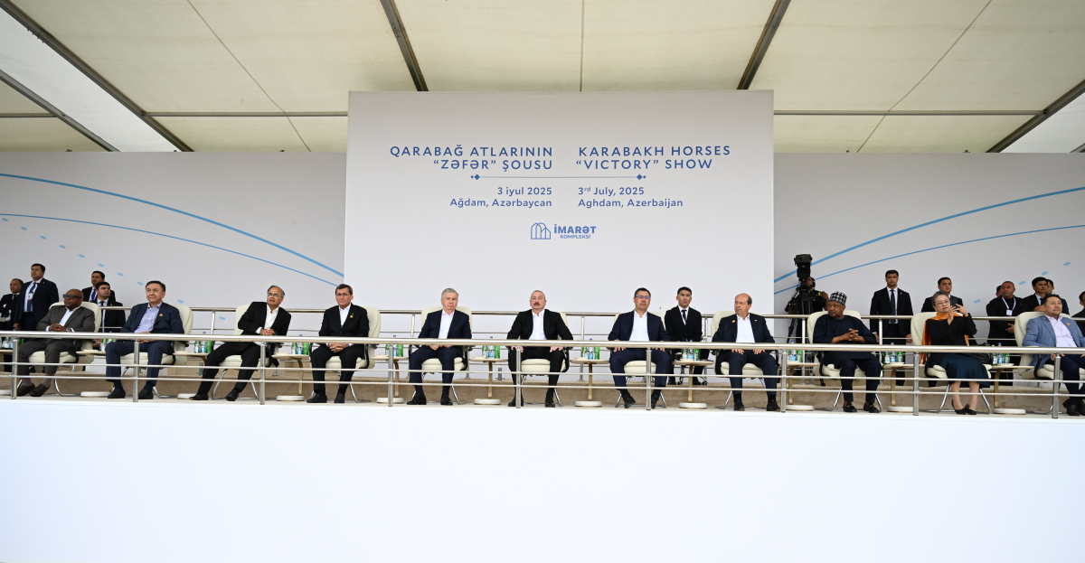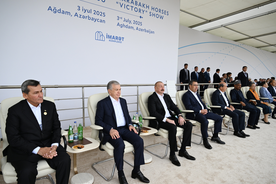3 июля Президент Азербайджанской Республики Ильхам Алиев, Президент Республики Узбекистан Шавкат Мирзиёев, Президент Кыргызской Республики Садыр Жапаров, Президент Турецкой Республики Северного Кипра Эрсин Татар и участники предстоящего в Ханкенди 17-го Саммита Организации экономического сотрудничества (ОЭС) посмотрели шоу карабахских скакунов «Победа» в историко-архитектурном музейном комплексе «Имарет» в Агдаме.