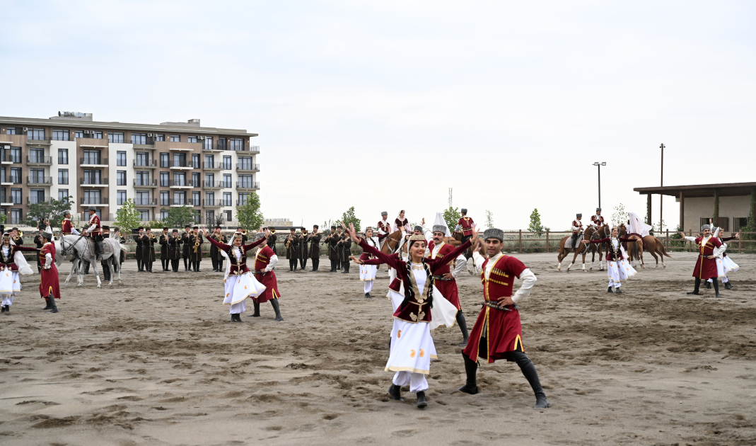 Национальная музыка в исполнении военного оркестра, танцы, представленные танцевальным ансамблем «Серхедчи», и примеры храбрости и отваги, продемонстрированные отрядом кавалеристов Государственной пограничной службы на карабахских скакунах, были встречены с большим интересом. Наши наездники показали высокий профессионализм во время шоу.