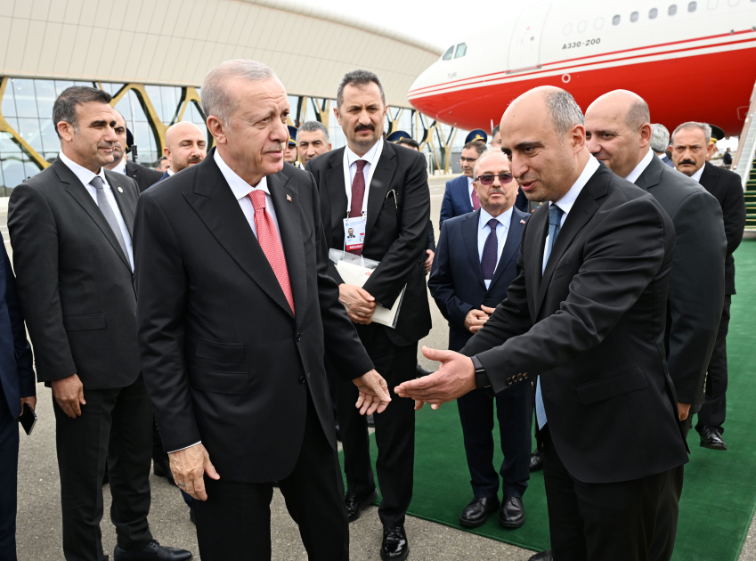 Президента Турции Реджепа Тайипа Эрдогана встречали министр науки и образования Азербайджана Эмин Амруллаев, специальный представитель Президента Азербайджанской Республики в Агдамском, Физулинском и Ходжавендском районах Эмин Гусейнов и другие официальные лица.