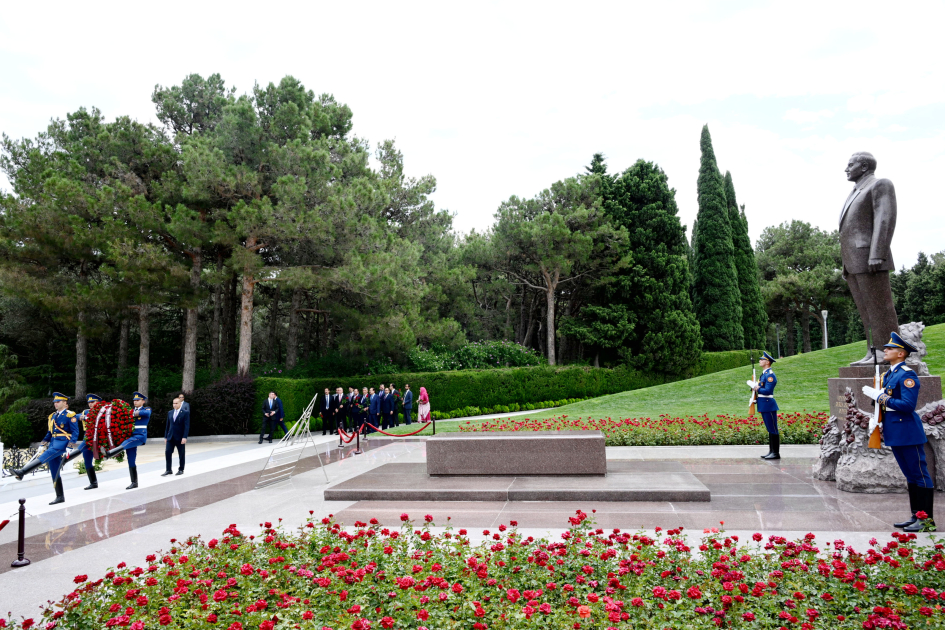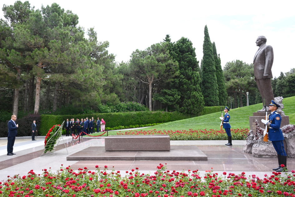 Как передает "Qafqazinfo", члены делегации отдали дань уважения памяти общенационального лидера нашего народа, архитектора и основателя современного независимого Азербайджанского государства Гейдара Алиева, возложили венок к его могиле.