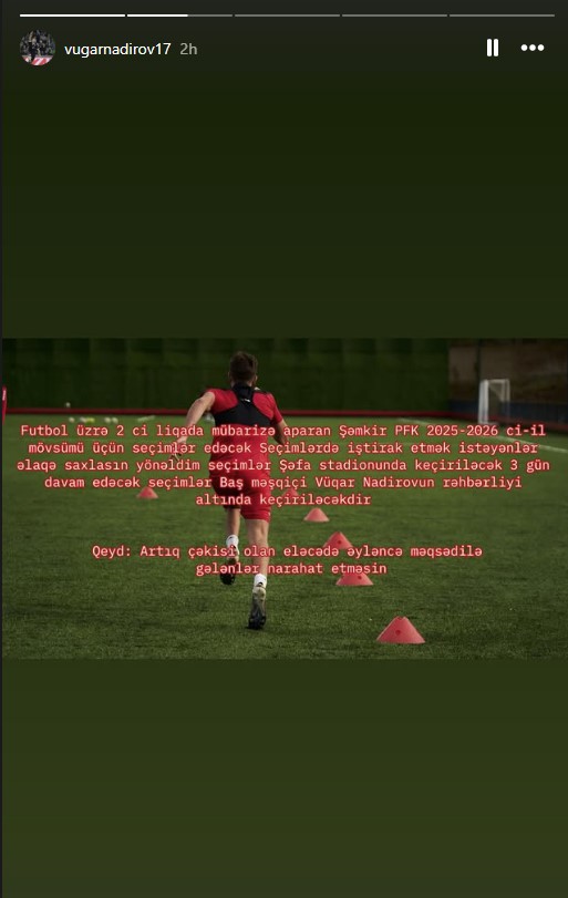 “Желающие принять участие на просмотрах могут связаться с нами”, - написал экс-футболист “Карабаха” и сборной Азербайджана.