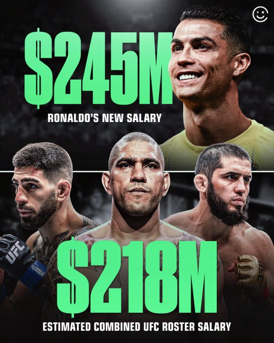 Контракт Роналду на $245 млн в год превышает годовой доход всех бойцов UFC, который составляет $218 млн.