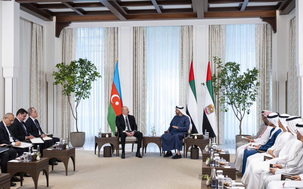 С удовлетворением были отмечены визиты Президента Ильхама Алиева в Объединенные Арабские Эмираты в январе этого года и Президента Шейха Мухаммеда бен Заида Аль Нахайяна в Азербайджан, отмечено, что в ходе этих визитов состоялись обстоятельные обсуждения по двусторонней повестке дня, охватывающей различные сферы.