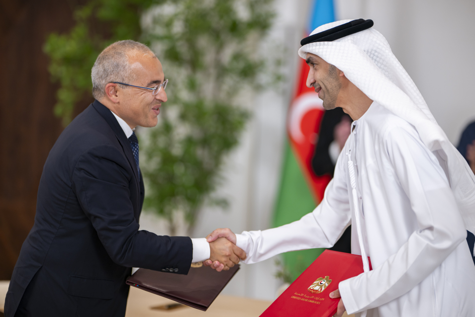 Затем с участием президентов было подписано «Соглашение о всеобъемлющем экономическом партнерстве между Правительством Азербайджанской Республики и Правительством Объединенных Арабских Эмиратов».