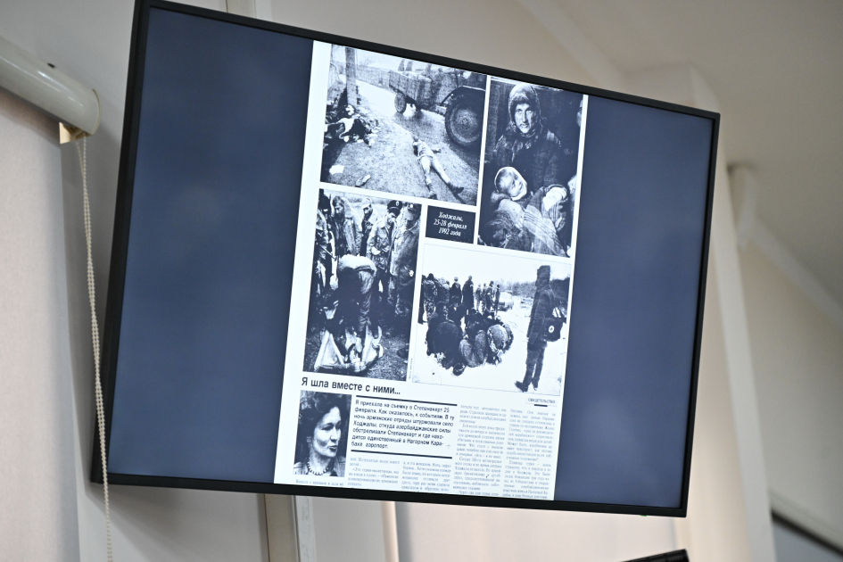 Тогда в суде была показана страница из газеты «Московские новости», опубликованная журналисткой Викторией Ивлевой (фотографии, сделанные в Ходжалы военным фотожурналистом Викторией Ивлевой, сотрудничавшей с различными газетами, также вошли в книгу «Ходжалы - свидетель военного преступления. Армения на скамье подсудимых» - ред.) с ее фотографией. М. Бекирова подтвердила, что на фотографии изображена женщина, которая им помогала.