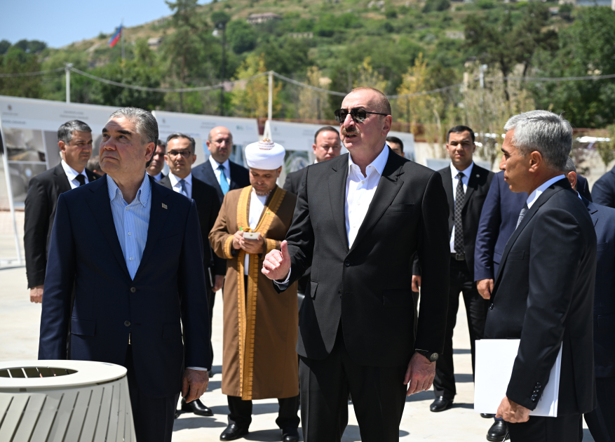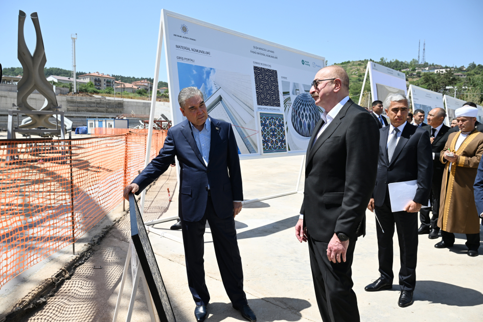 17 июля Президент Азербайджанской Республики Ильхам Алиев и председатель Халк Маслахаты Туркменистана Гурбангулы Бердымухамедов ознакомились с ходом строительных работ в Новой Шушинской мечети.