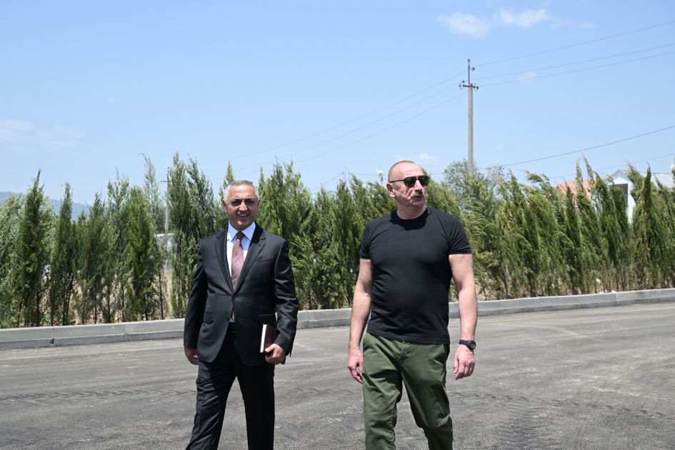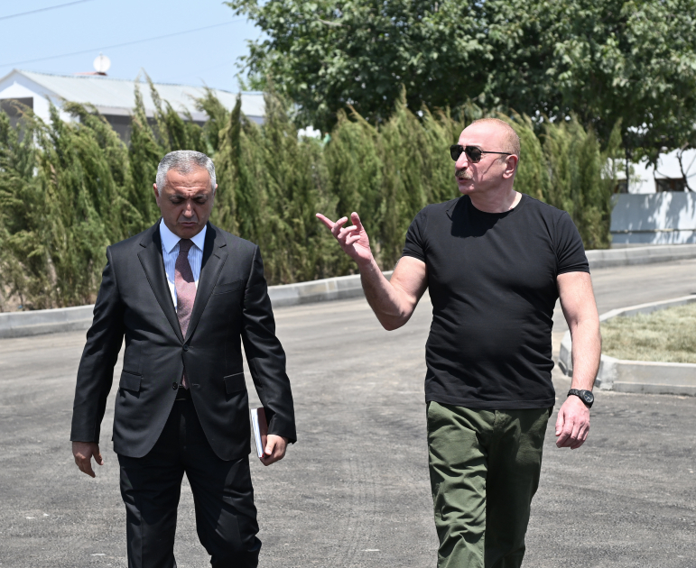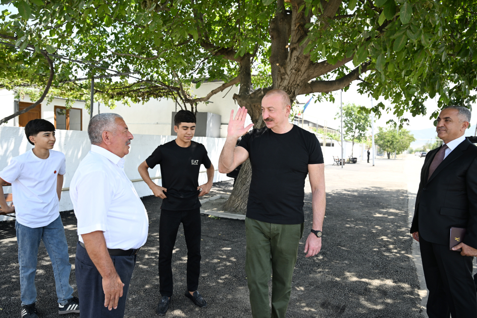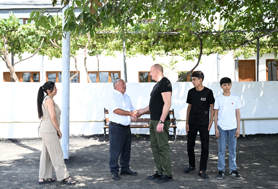 Как передает "Qafqazinfo", глава государства сначала посетил дом переехавшего в село Мухаммеда Фараджева.