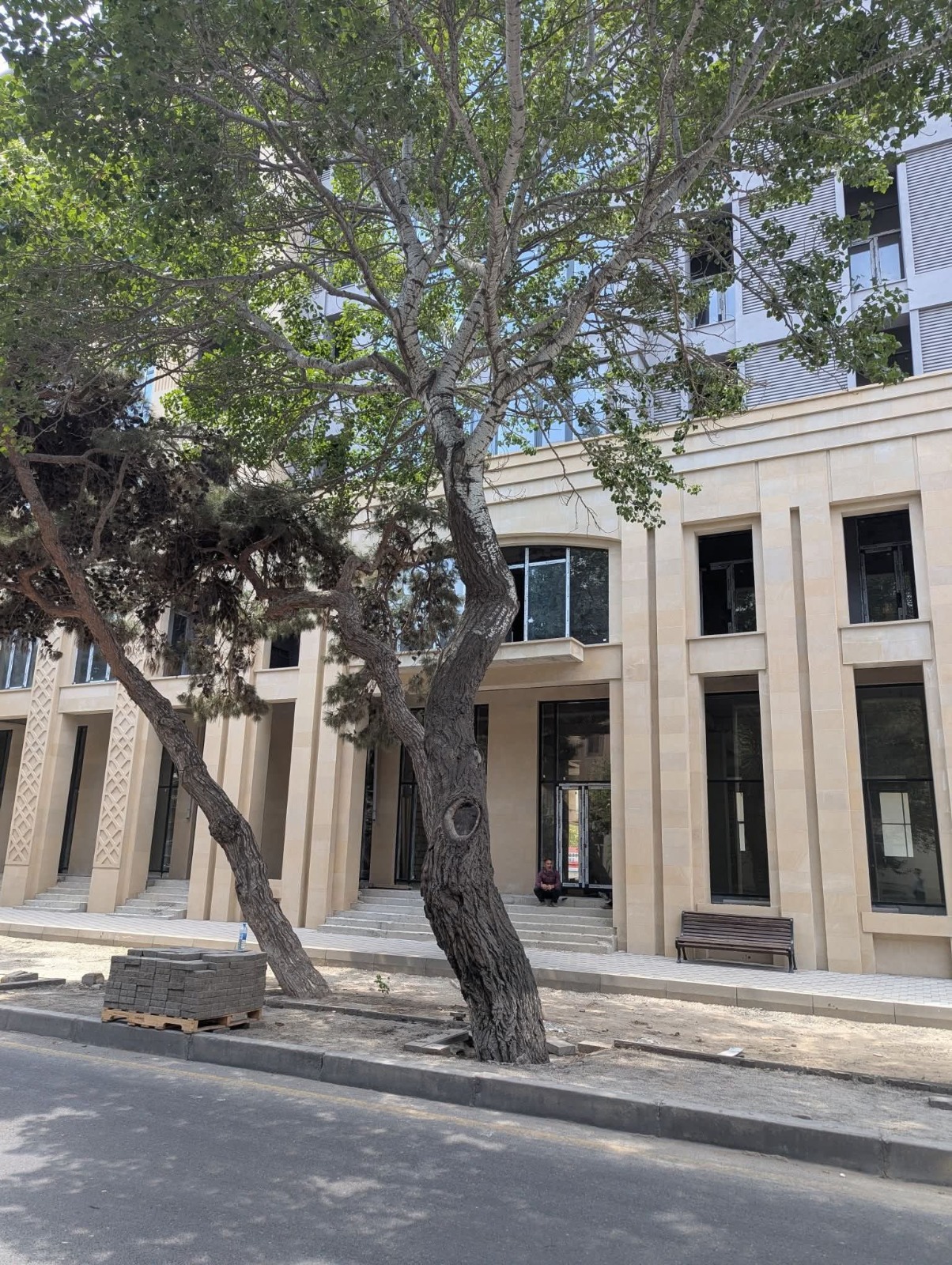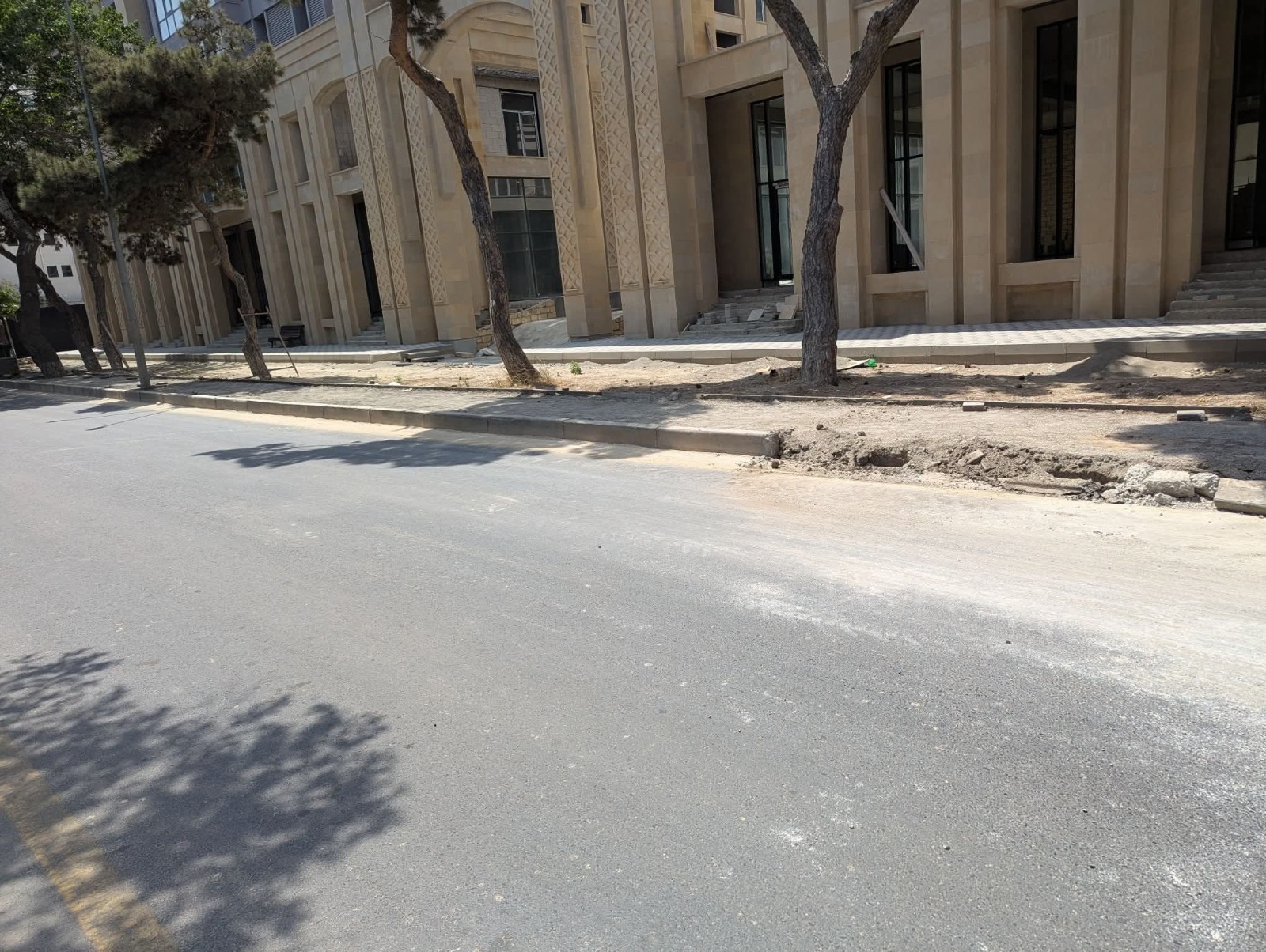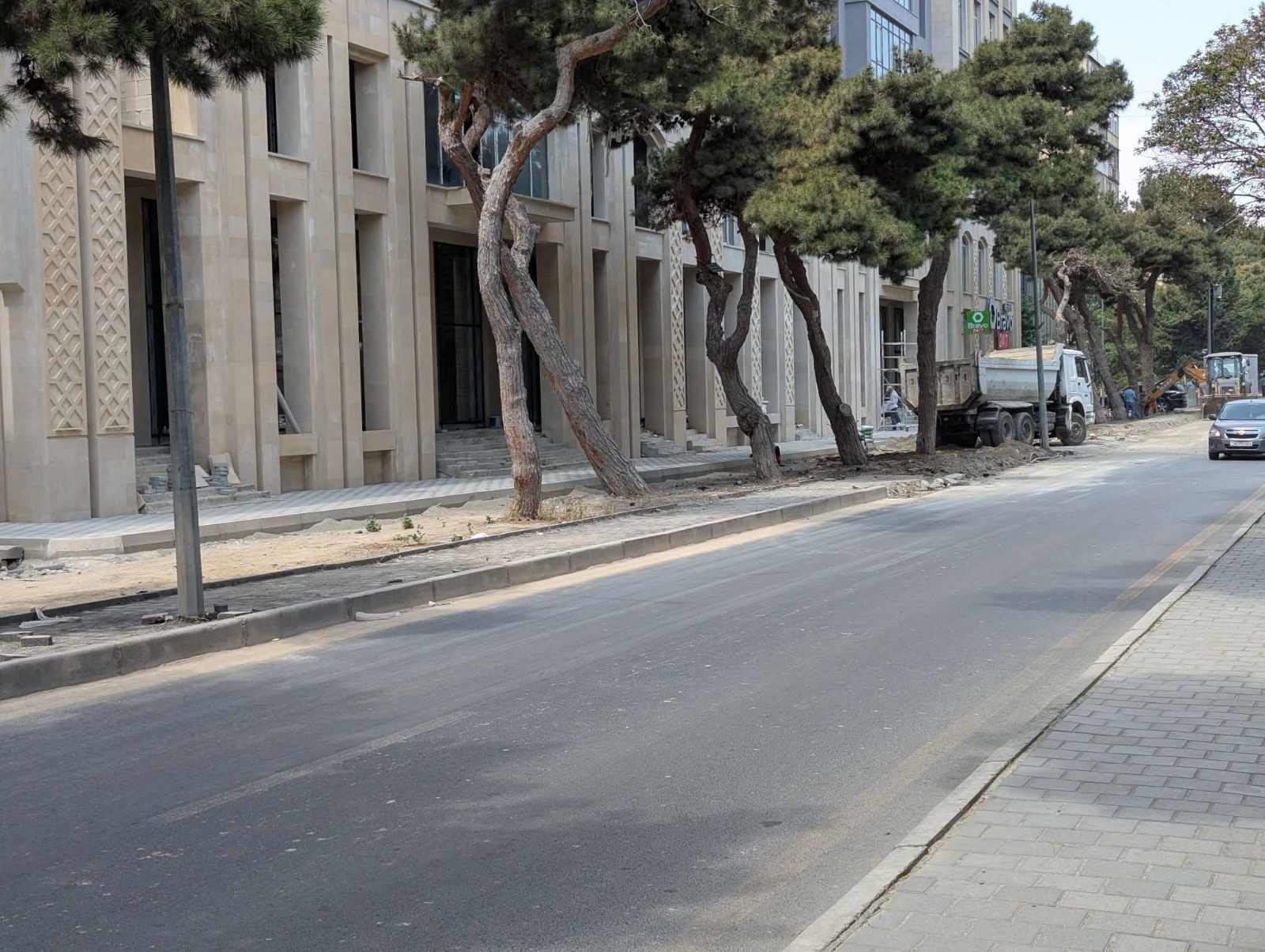 В Наримановском районе Баку, на улице Исмаила Хидаятзаде, напротив Şirvanşah Residence ночью были заасфальтированы лунки деревьев ради создания автомобильной парковки.